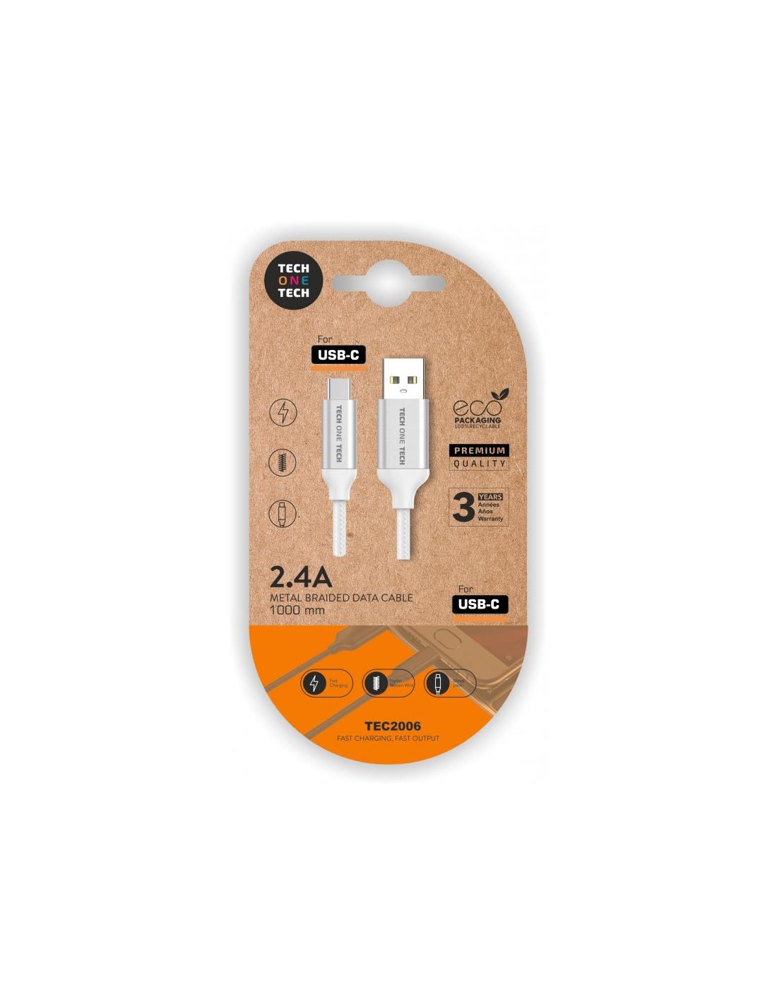 CABLE BLANCO USB-A A TIPO C 1M TEC2006