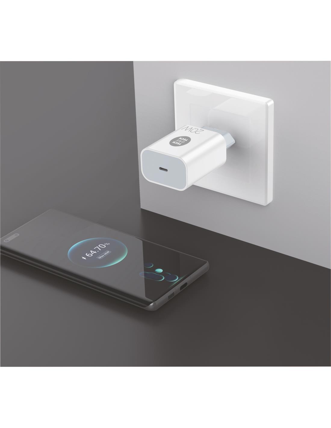 Cargador ultrarrápido Power Delivery 3.0 (PD) 20W, color blanco. Carga hasta un 400% más rápido que un cargador estándar de 5W. Compatible con dispositivos anteriores. Conector tipo USB-C de 3A. Este cargador permite cargar dispositivos como tabletas, móviles, consolas, baterías, auriculares, etc. Compatibilidad: Entre otros con iPhone 14, 14 Plus, 14 Pro, 14 Pro Max, SE 3, iPhone 13, 13 mini, 13 Pro 13 Pro Max, 12,12 Pro, 12 Pro Max , 12 Mini , iPhone 11, 11 Pro , 11 Pro Max , iPhone SE , XS , XS Max , XR , X , iPad Pro 2018, 2020. Samsung S23, S23 Ultra, S23+, A52, A52S, A71, A52, A70, A71, A72, A80, S21 Ultra , S21+ , S21 , S20 Ultra , S20+ , S20, Samsung Galaxy Tab. Xiaomi 13, 13 Pro, Xiaomi 12, 12 Pro, Redmi Note 9S, Note 10, Note 11, Mi12, Mi11, Mi 10, Mi 9. Google Pixel 5, 5a 5G, Pixel 4, 4XL, Google Pixel Slate. Microsoft Surface. Huawei Mate 40, 40 Pro, 40 Pro+, Mate 30 Pro / Mate 30 / Mate 20 Pro / Mate 20 / P50 /P50 Pro / P40 Pro / P40 / P30 Pro / P30 / nova 7 / nova 6 y modelos nuevos a partir de la fecha de esta publicación. Accesorios: Completa el cargador con el cable verificado TECH ONE TECH adecuado. TEC2203 - Cable PD 3.0 (Comp. Apple) Ultrarrápido. (USB-C a Lightning) Braided Nylon 1M 3A Blanco TEC2204 - Cable PD 3.0 (USB-C) Ultrarrápido. (USB-C a USB-C) Braided Nylon 1M 3A Blanco Salida inteligente PD Puertos de salida inteligente que se comunica con el dispositivo cargado, suministrando la potencia necesaria y requerida. Incrementa los niveles de potencia sobre los estándares existentes de USB. Permite la máxima funcionalidad al proporcionar un suministro de energía más flexible junto con datos a través de un solo cable. Smart recognition Incorpora microchip de gestión de energía, identificación inteligente (IC), carga de manera eficiente y protege completamente su equipo. Fire retardant Shell Fabricado en PC/ABS, proporciona una alta resistencia al calor e impactos, así como un amplio rango térmico de funcionamiento. Dimensiones / Peso 78mm x 40mm x 25mm, peso 50 gramos Datos técnicos Alimentación : 100 - 240V 50 - 60Hz. Tensión de salida : 5V-3A / 9V-2.22A / 12V-1.67A / 15V-1.33A. Normativas y seguridad Cumple con las normas de CE, FCC, RAEE y ROHS. Multi-protecciones contra sobrecarga y cortocircuito previenen efectivamente los posibles daños a tus dispositivos Garantía 3 AÑOS. La más alta calidad del mercado con la mayor garantía. Productos pensados para durar.