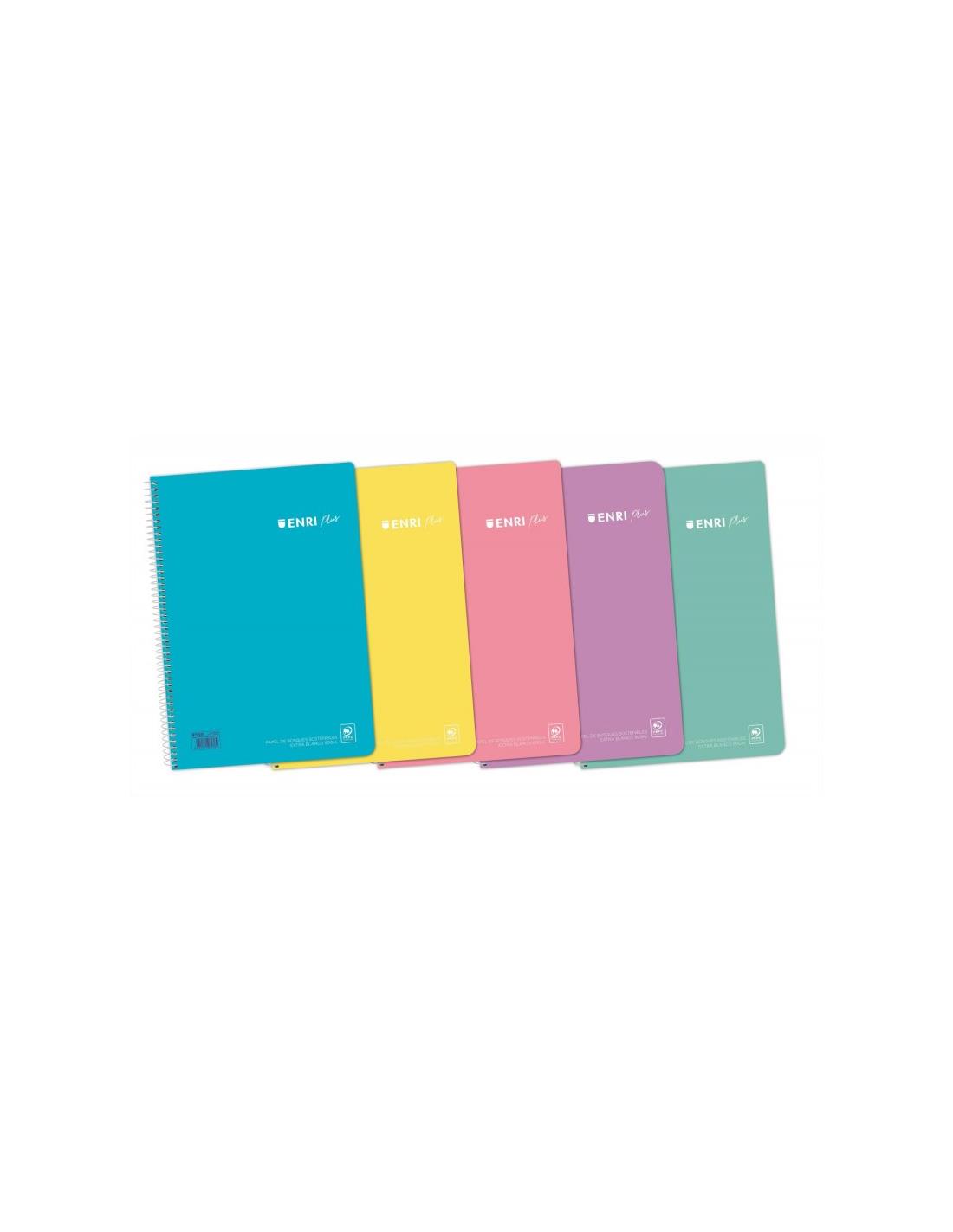 Cuaderno espiral Folio 80 Enri Plus Tapa Plastico en Colores Pastel C4 90 gr. 400150287 Bloc espiral con tapa de polipropileno 90g. 80 hojas. Certificado PEFC.