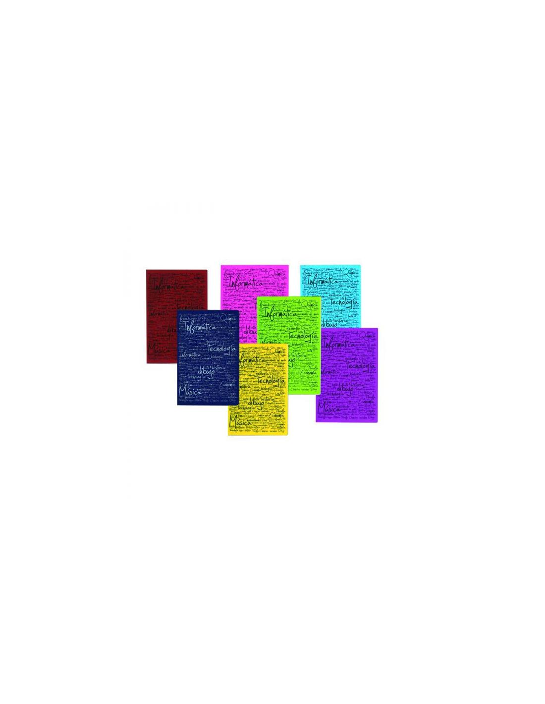 Cuaderno espiral tapa de polipropileno con 80 hojas de papel de 70 g. Espiral blanca. 7 colores de tapa: azul, naranja, fucsia, verde neón, rojo, azul oscuro y amarillo. Paquete 7 ud.