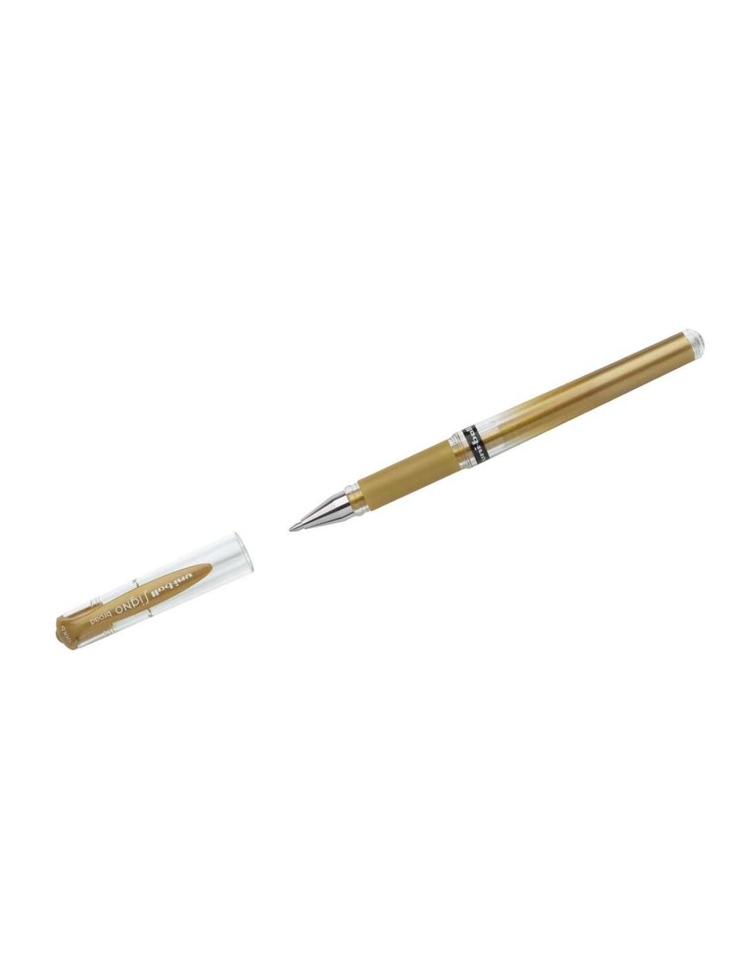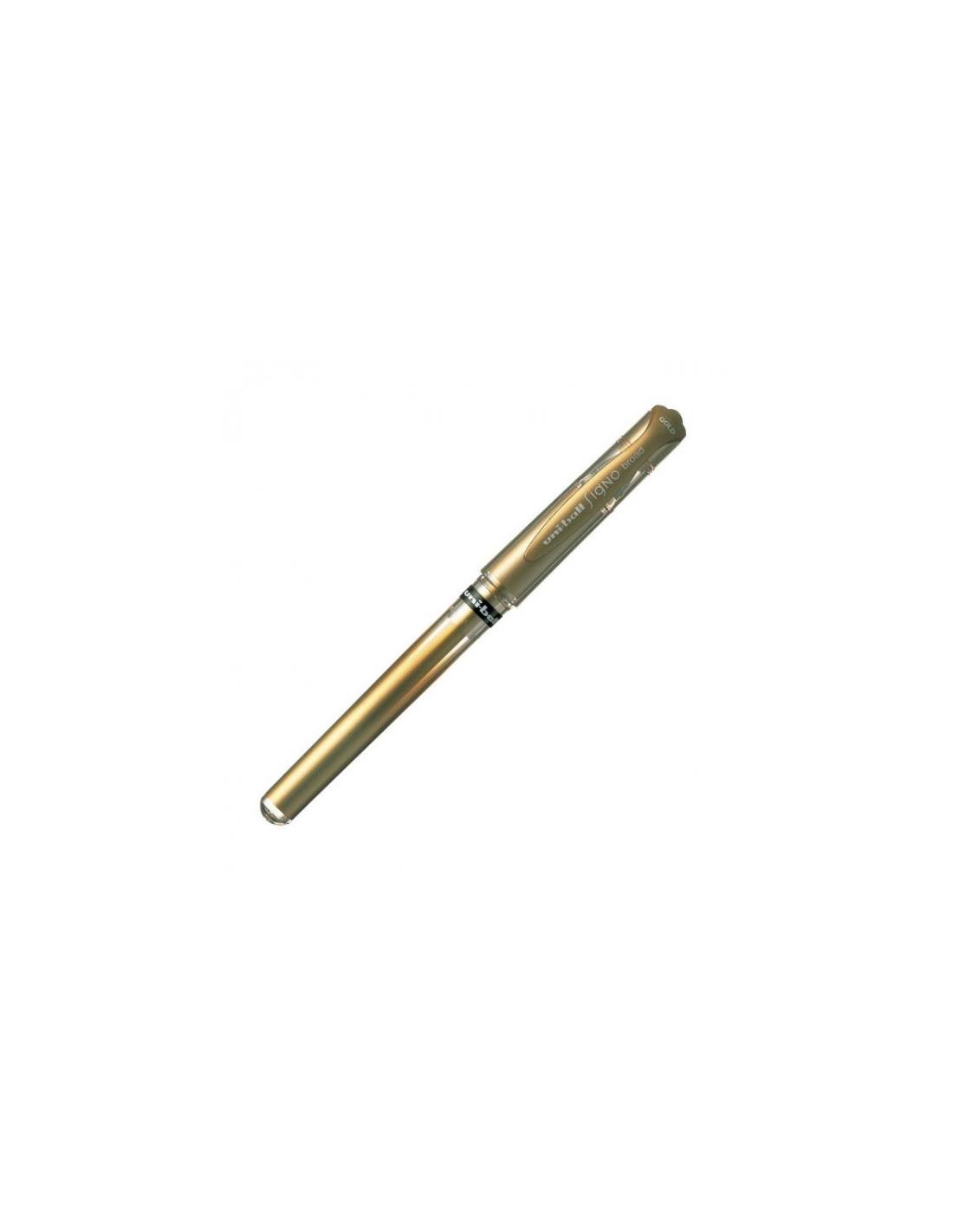 Bolígrafo Uni-Ball Signo UM-153, Color oro. Roller con tinta de gel. Punta de acero inoxidable. Bola de 1.0mm. Cuerpo de plástico (AS). 0 de carburo de tungsteno. Con un clip de sujeción en el capuchón. La tinta tiene una duración de 5 años.