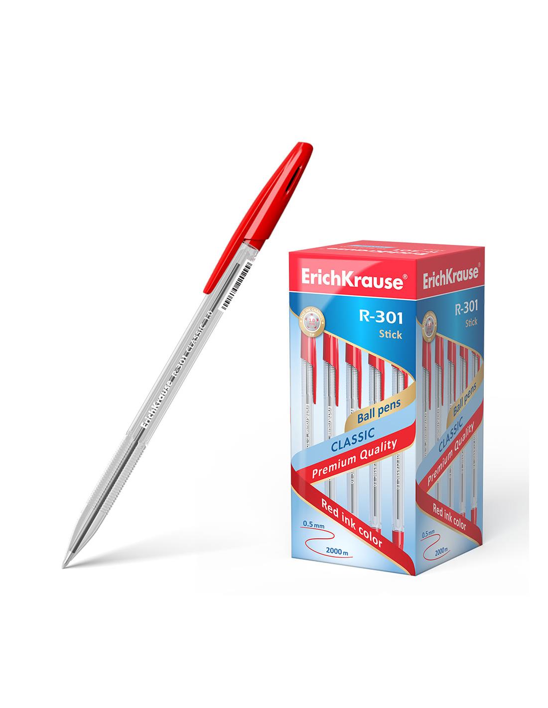 Bolígrafo ErichKrause R-301, rojo. Bolígrafo económico con cuerpo de cristal y punta redonda. Tapón ventilado del mismo color que la tinta. Trazo de 0,4 mm