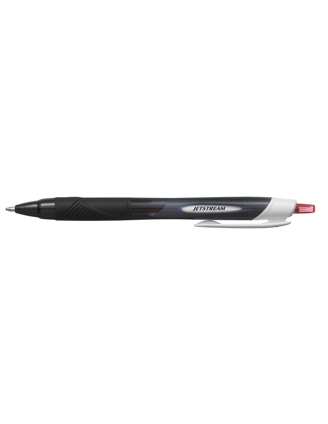 Bolígrafo rojo, retráctil, de moderno diseño y juvenil. Zona de agarre de goma y cuerpo transparente. Al igual que el resto de la gama Uni-Ball Jet Stream, es el roller más rápido del mundo, con secado instantáneo y suavidad de escritura extrema.