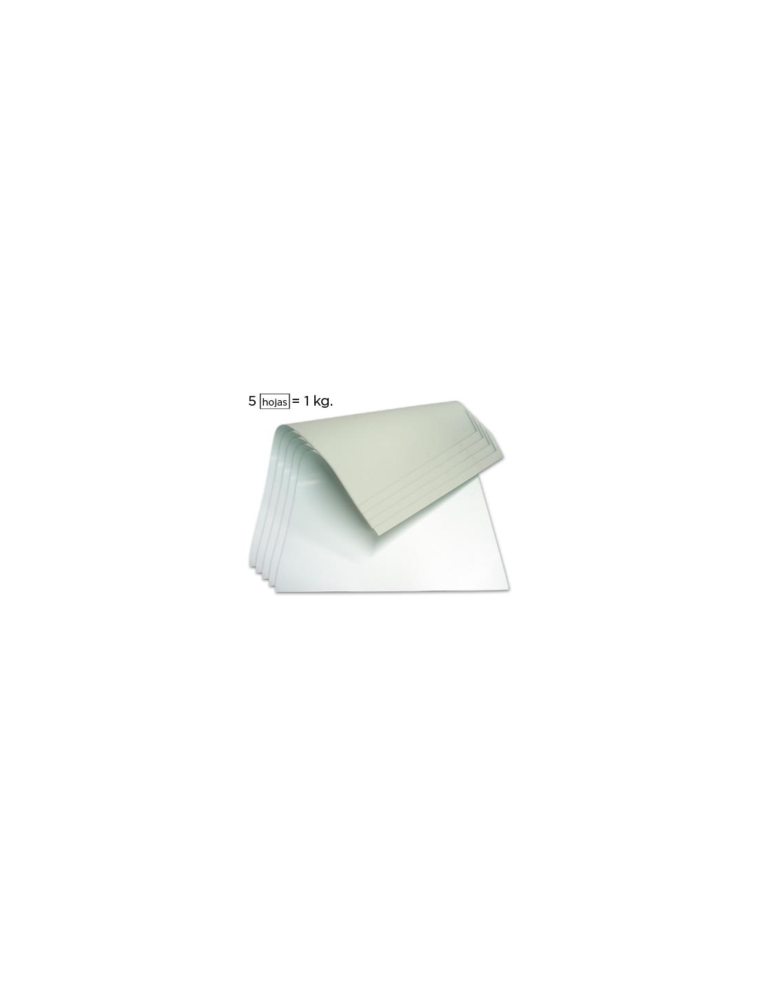 Cartoncillo blanco de una cara. De alta rigidez y resistencia, ideal para manualidades. 5 hojas (equivalen a 1 kg).