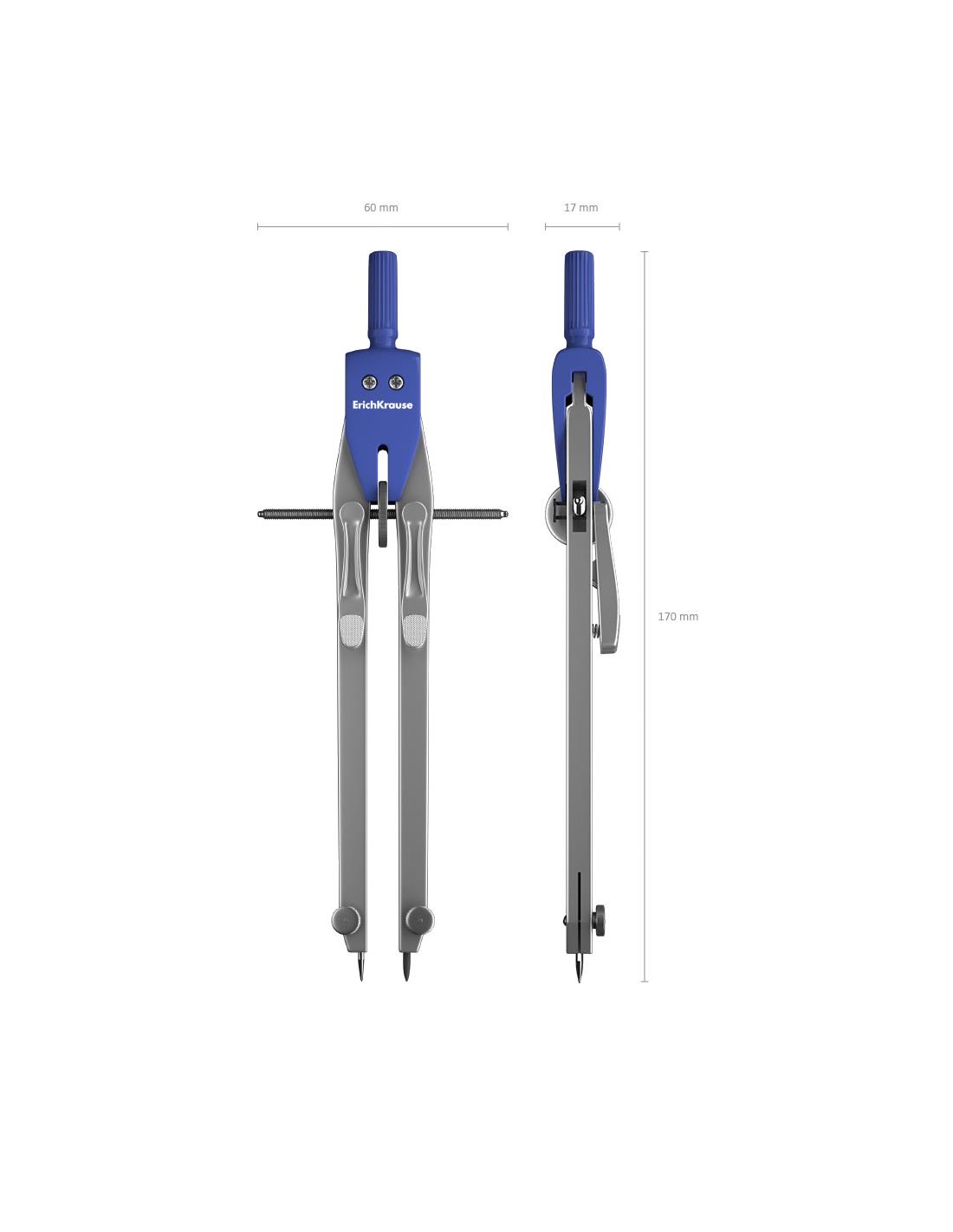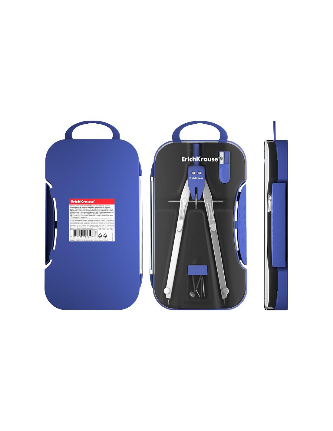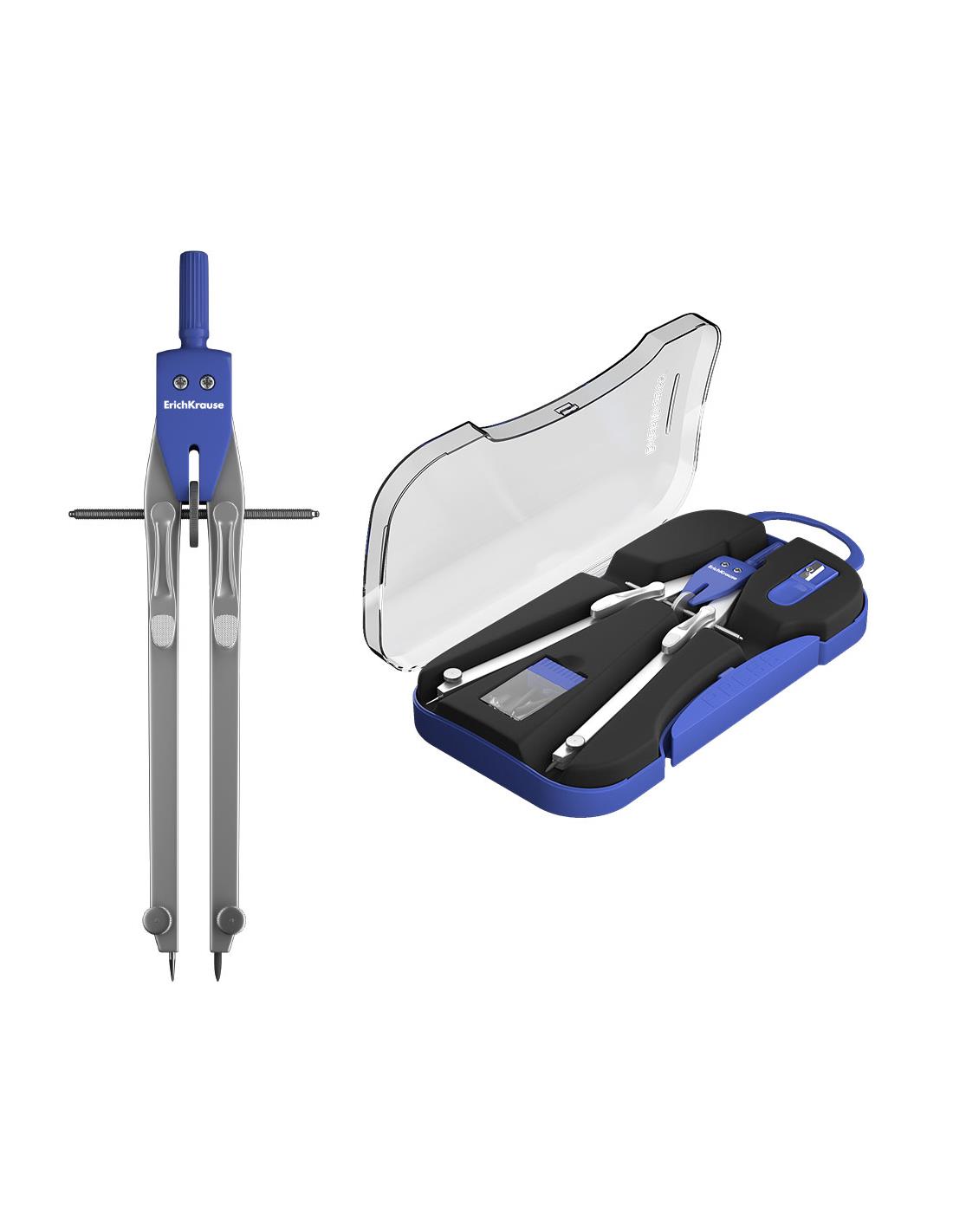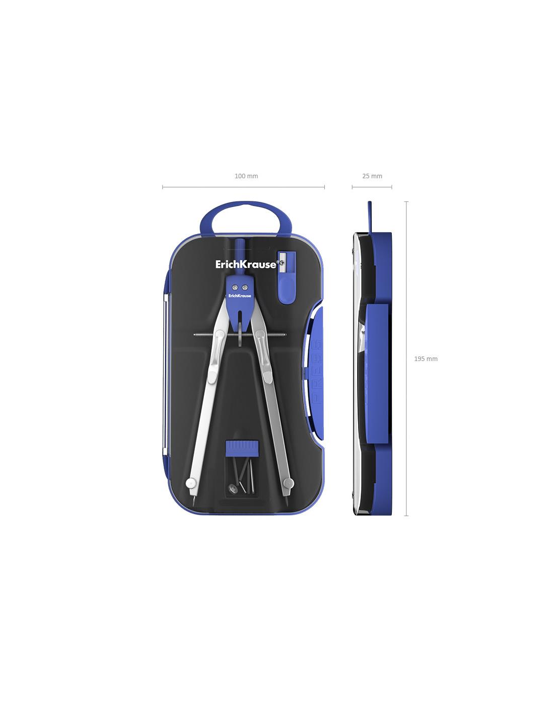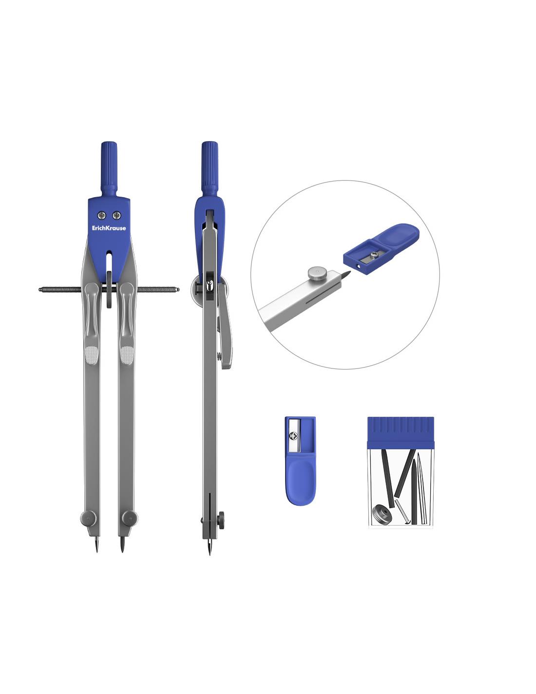 Conjunto de instrumentos de dibujo. El juego incluye: Compas metalico (radio maximo de 18.8 cm), un sacapuntas y una mina de recambio en el estuche de plastico. Empacado en una caja de plastico con colgador.