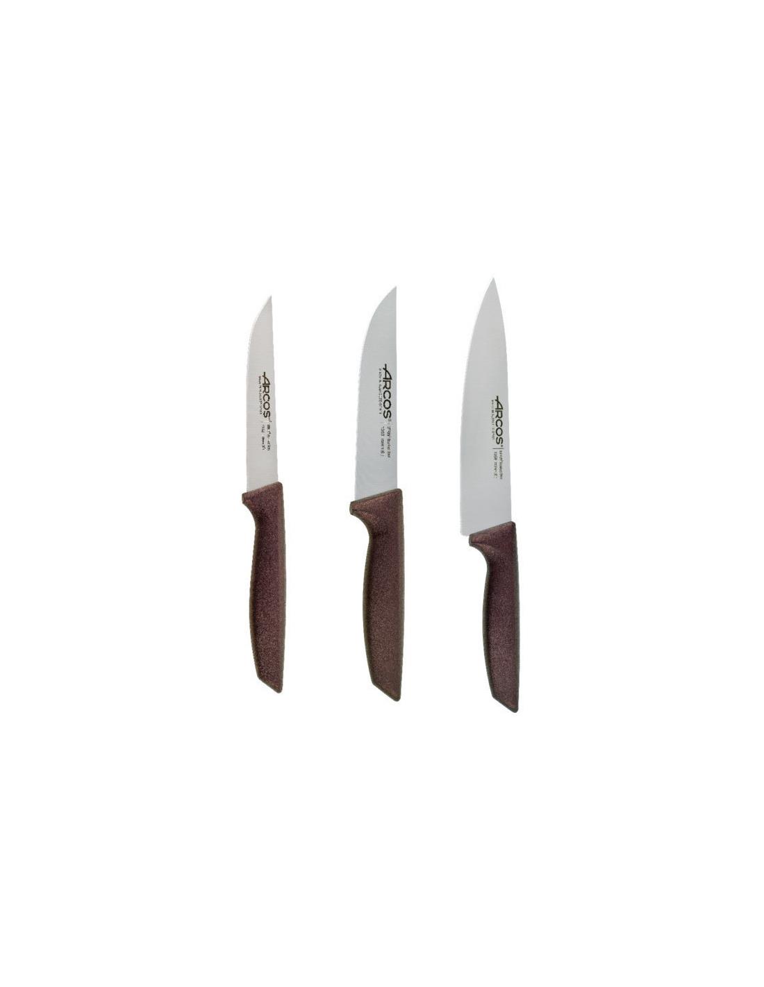 En cualquier cocina es indispensable contar con cuchillos de calidad que permitan cortar con facilidad fruta, pescado, carnes y verduras. El Set Cocina Color Vino Metalizado Serie Niza, incluye un cuchillo cocinero con hoja de 200 mm, un suchillo cocina con hoja de 150 mm y un cuchillo verdura con hoja de 110 mm.