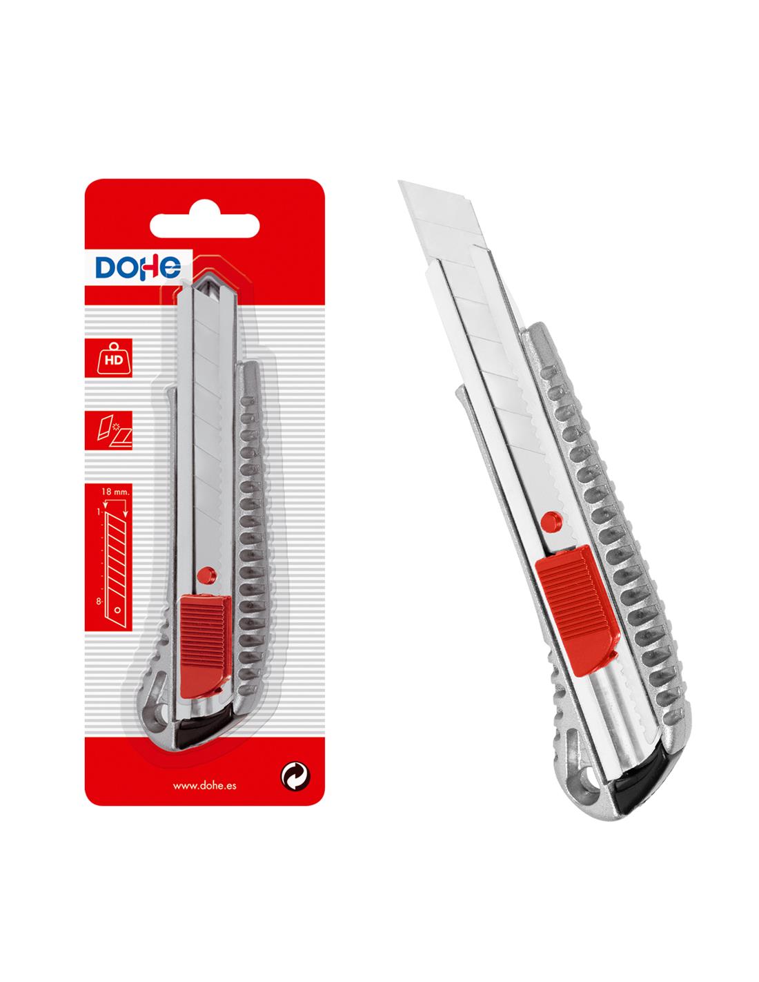 Cutters fabricados en cuerpo y guía de acero inoxidable, con sistema de bloqueo de cuchilla. Cuchillas tronzables de acero. Se presentan en blister individual.