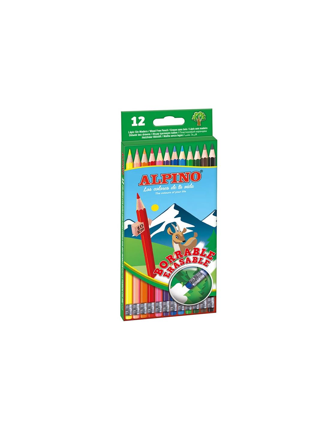 Estuche de 12 lápices de colores con mina borrable y goma de borrar del mismo color incorporada. Corrige los pequeños errores sin esfuerzo y sin dejar rastro. Gama de 12 colores brillantes con mina resistente a la rotura.