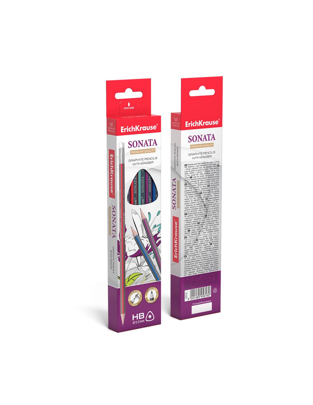 Lapiz de grafito negro ergonomico, triangular con borrador, fabricado de madera seleccionada. Dureza HB. La impregnacion especial de la madera maciza y el pegado de la mina en todo el cuerpo garantizan una alta resistencia al impacto. La madera blanda y la alineacion perfecta de la mina garantizan el facil afilado y el uso economico del lapiz. La mina 2.2 mm de diametro no arana el papel y no se desmorona. Borrador de dureza media. Fabricado de caucho termoplastico hipoalergenico (TPR), ecologico y moderno. No contiene PVC.