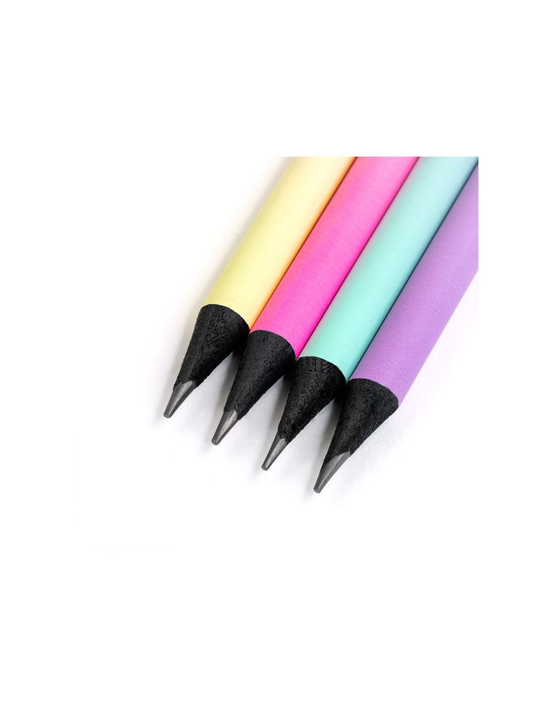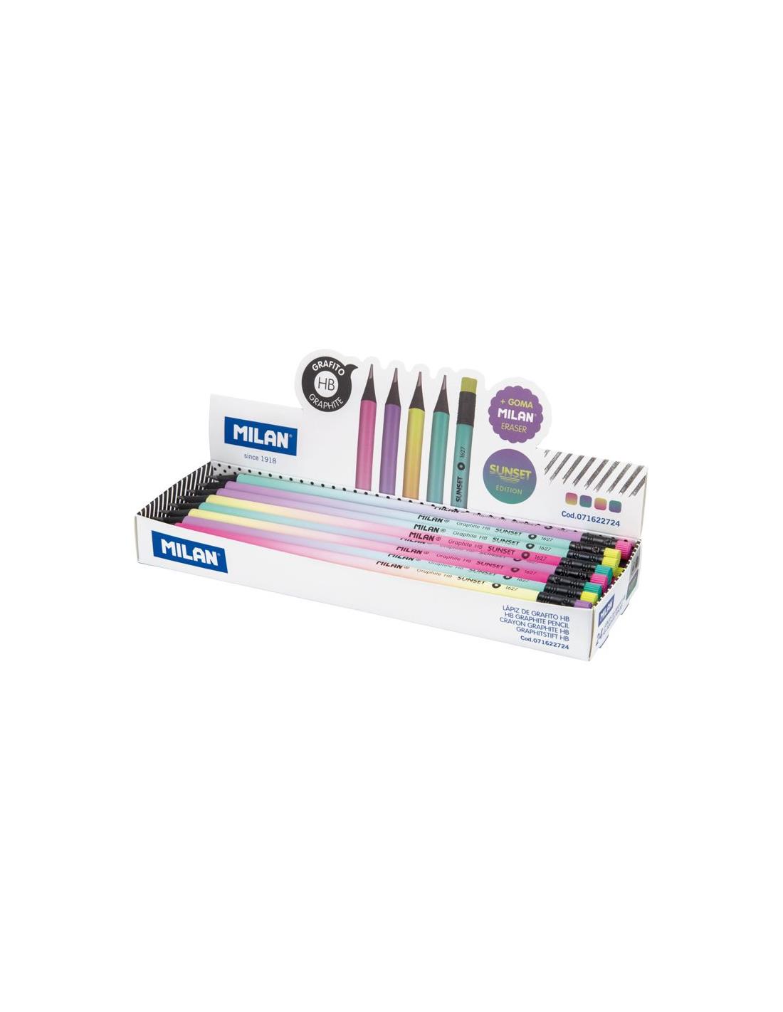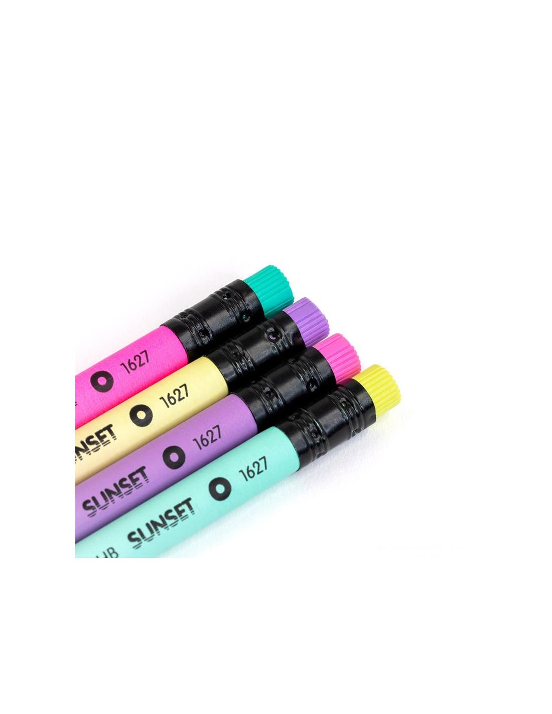 Caja expositora 24 lápices de grafito HB redondos con goma, serie Sunset