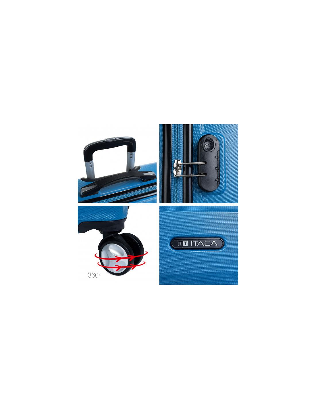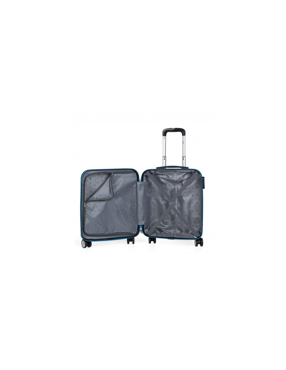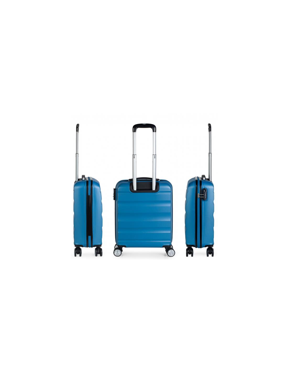 Maleta trolley tamaño 50 realizada con ABS, un material ligero y a la vez resistente. Otra ventaja es que permite mayor maniobrabilidad con sus 4 ruedas dobles giratorias 360° multidirección de suave rodamiento y su trolley telescópico con seguro hacen que su manejo sea más cómodo. Dispone de una cremallera con doble cursor y cerradura con combinación LOCK para una mayor seguridad. En su interior, contemplamos el forro personalizado de la marca, acorde al diseño exterior , con separación central. Contiene correas elásticas interiores que permiten la sujeción del contenido.