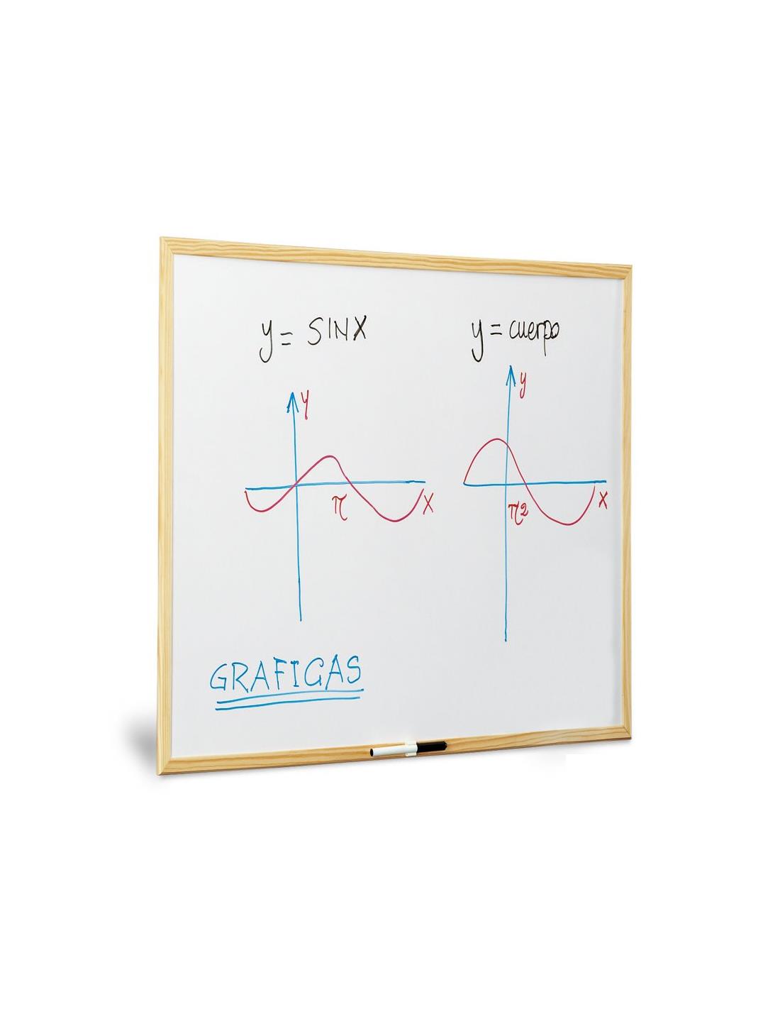 Pizarra blanca, con dimensiones 40x 60 cm. Posee marco de madera de pino y es 100% reciclable.