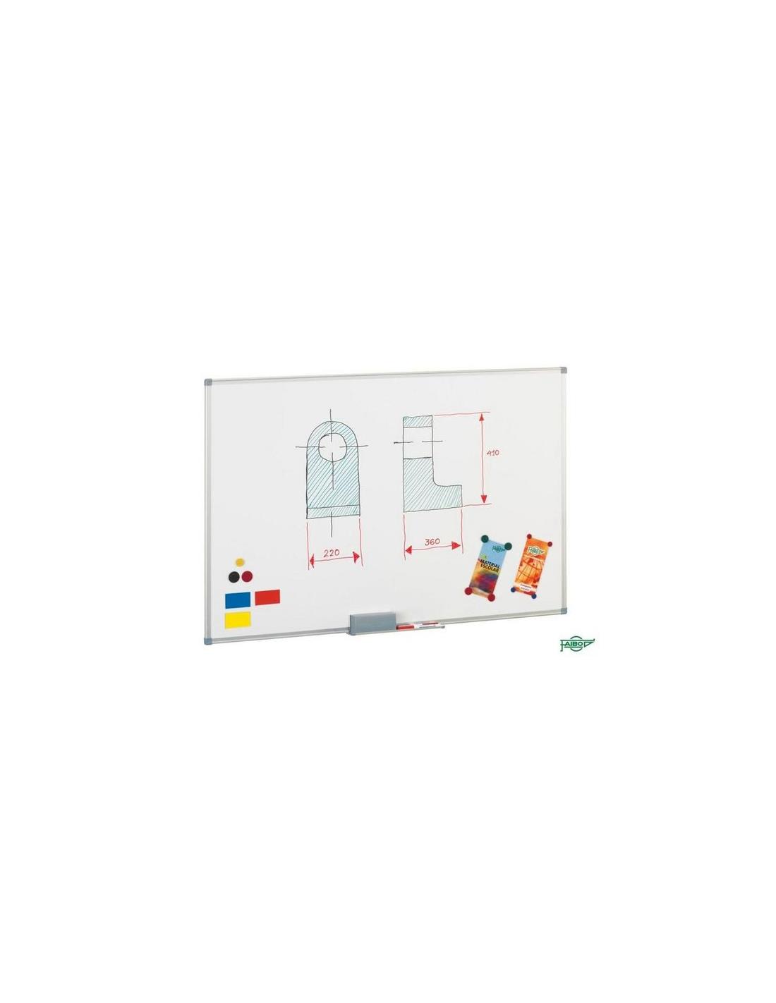 Pizarra blanca, metálica, con amrco de aluminio y cantoneras decorativas, superficie de acero lacado. Útil para el trabajo con imanes o figuras magnéticas. Permite la escritura con rotuladores especiales para pizarra blanca. Suministradas con cajetín de aluminio de 30cm y elementos de fijación. Se pueden instalar de forma horizontal o vertical.