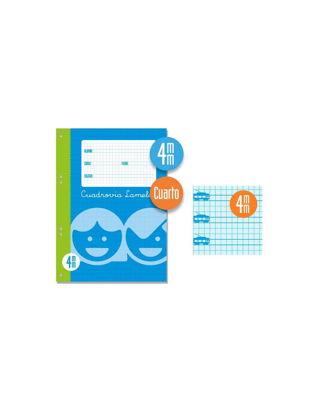 Offset blanco extra de 70 g/m con margen. Rayados con Cuadrovía Lamela® en tamaños de 2,5 mm, 3 mm, 4 mm, 5 mm, 6 mm, y 8 mm.
