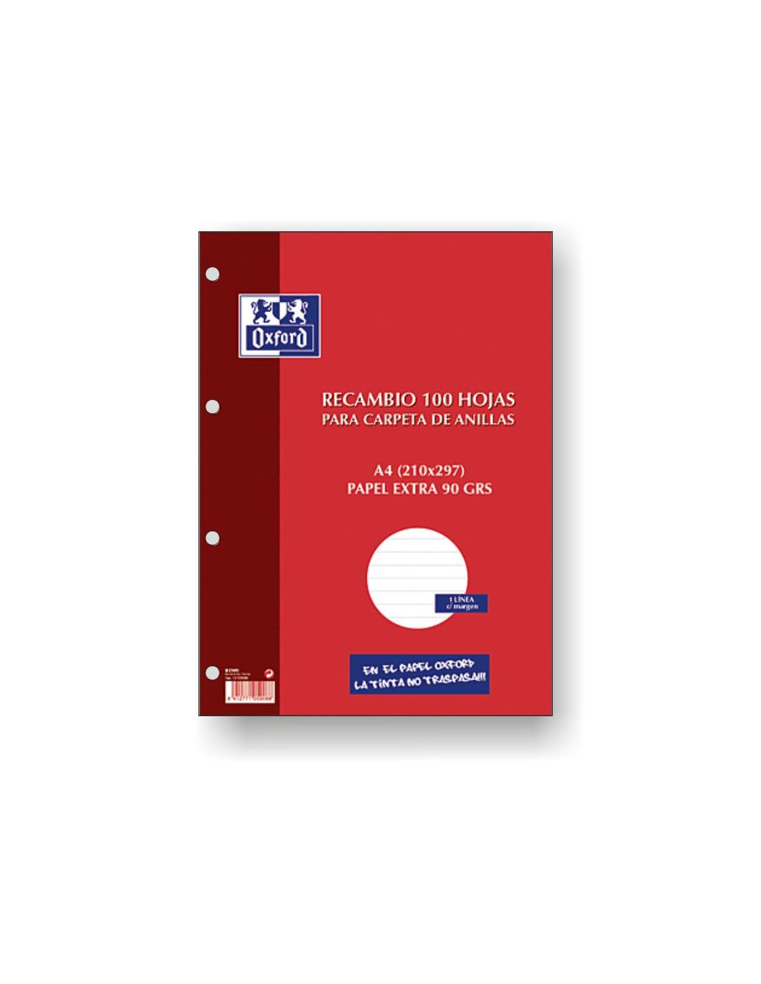 Recambio OXFORD retractilado en paquete de hojas sueltas, permite llevar contigo sólo las hojas que necesites, mover, y ordenar tus hojas con total libertad. Con 4 taladros para poder archivar las hojas cómodamente en tu Europeanbinder, Carpeta de Anillas o Archivador Palanca. Además con el papel exclusivo de Oxford OptikPaper la escritura es mucho más sencilla, el lápiz o la tinta se deslizan suavemente con facilidad, sin traspasar a la otra cara de la hoja. Liso. Disponible en varios formatos y rayados.
