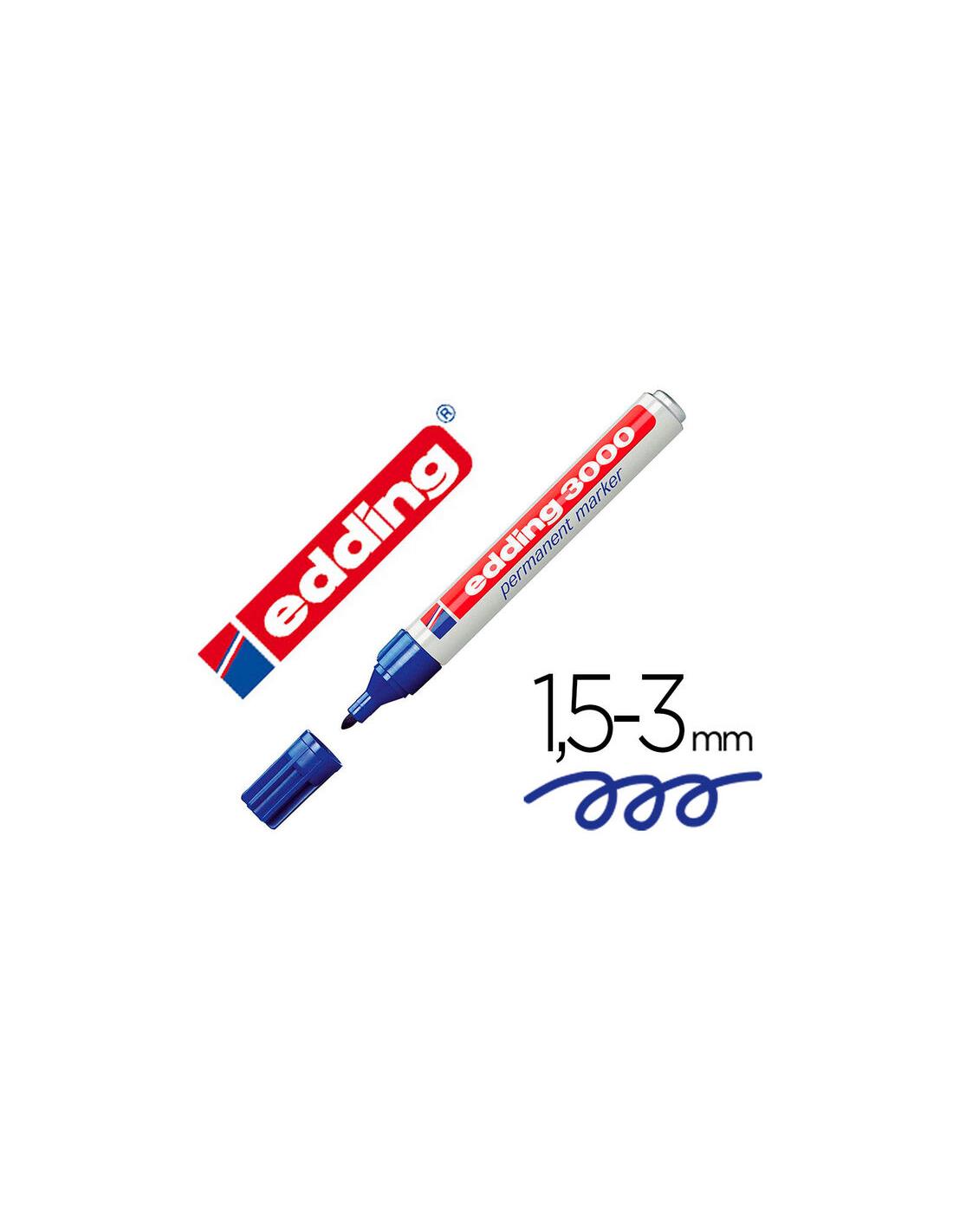 Marcador de tinta permanente, casi sin olor. De secado rápido, resistente al agua, al roce y a la acción de la luz. RELLENABLE con tinta Edding. Escribe y marca en todo tipo de materiales y superficies, incluido metal, vidrio y plástico.