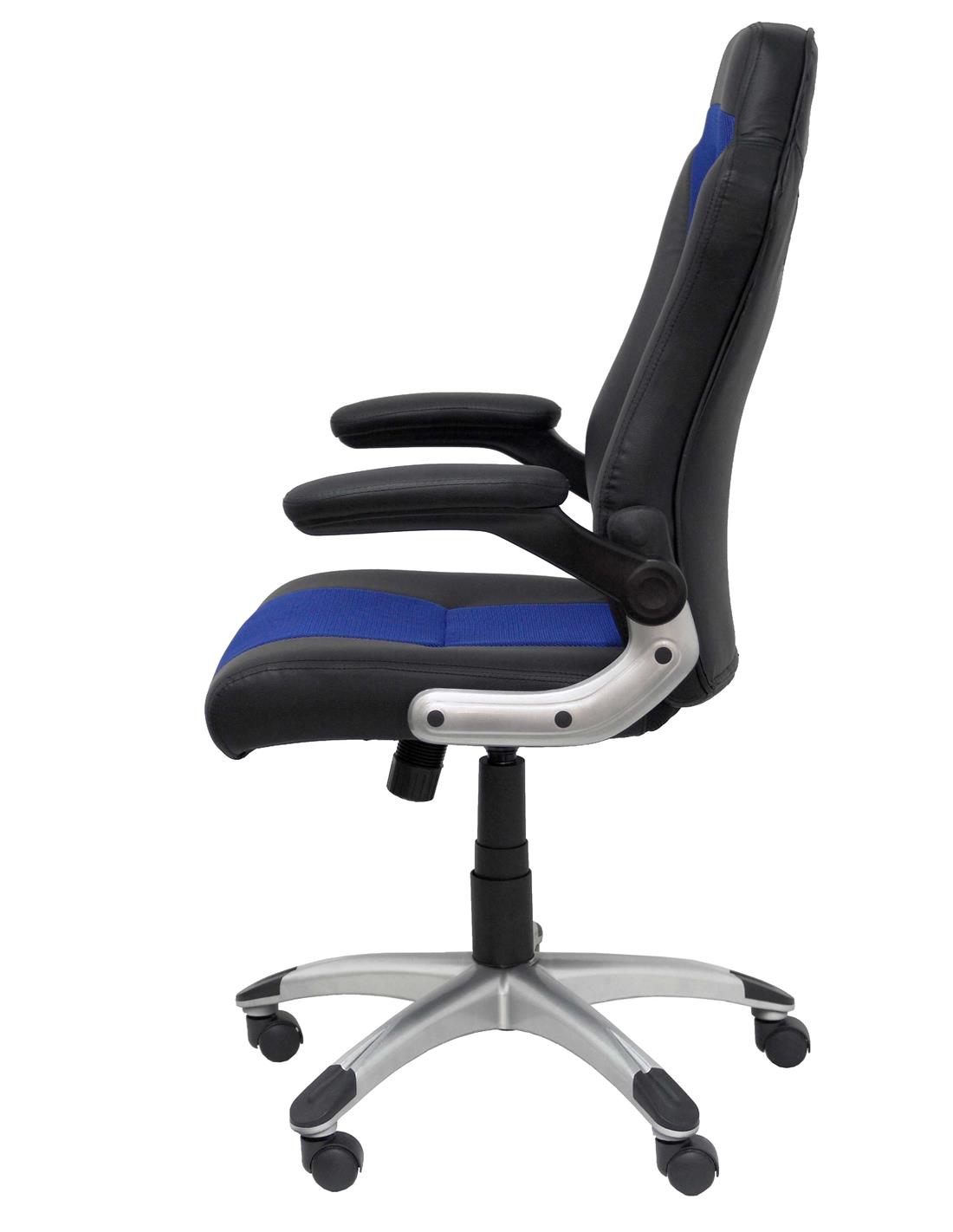 Asiento y respaldo tapizados en tejido SIMILPIEL color negro y azul.