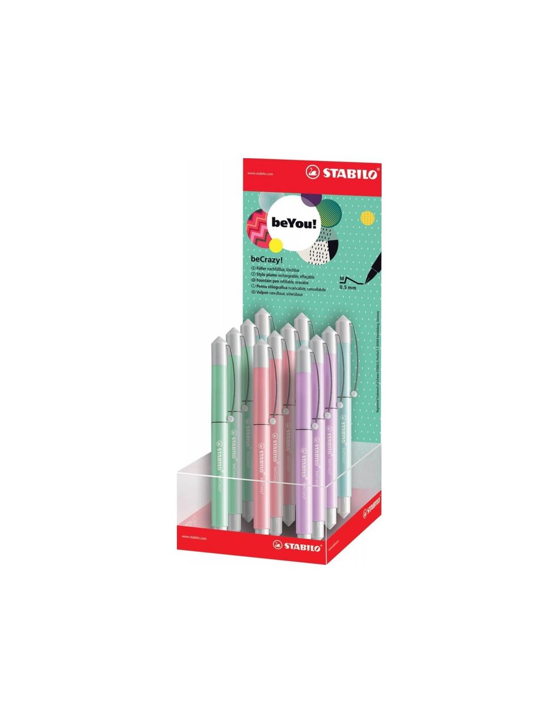 Expositor 12 Uds Bolígrafo Stabilo Be crazy en tonos pastel. Elige entre diferentes diseños de colores. El bolígrafo es ideal tanto para diestros como para zurdos. Su agarre relajado y su zona de agarre antideslizante evita la fatiga muscular. El bolígrafo viene con un cartucho de tinta estándar. Tiene un ancho medio de 0,5 mm.